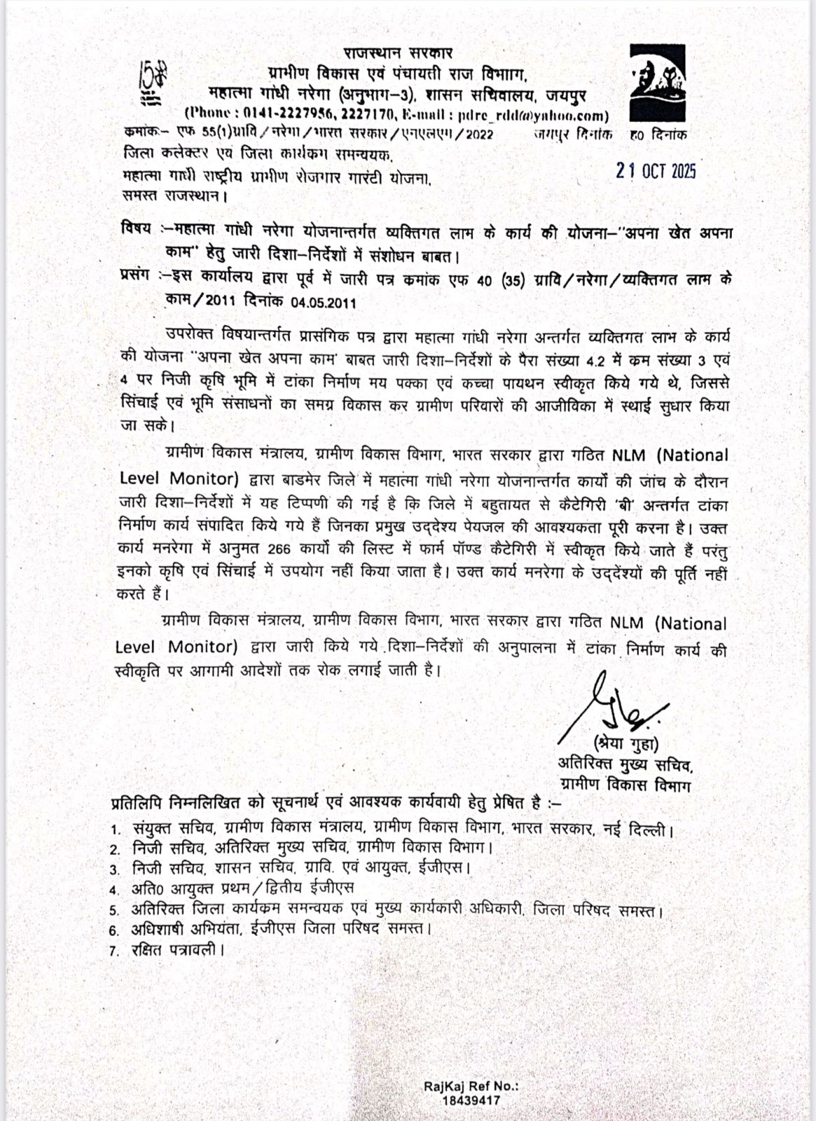 | 58 | अपना खेत अपना काम के संबंध में निर्देश | अपना खेत अपना काम क�... Read more | Guidelines | Personal work | 05 Dec 2025 | 404 | Download |